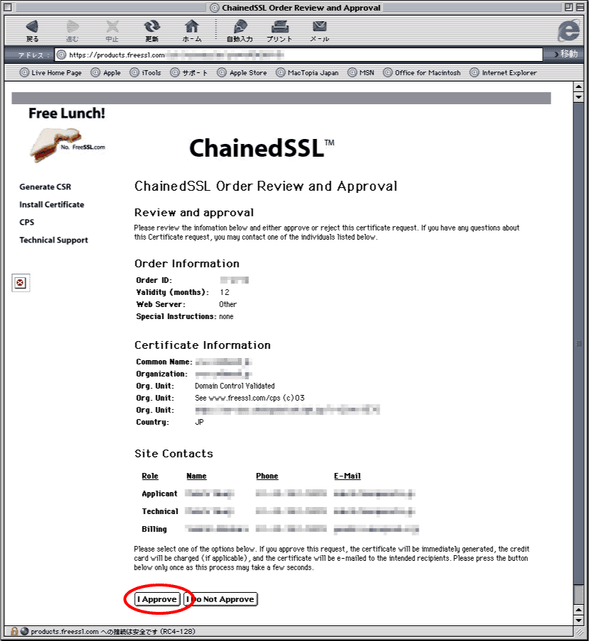 弊社側でFreeSSL.comに対して登録申請を行います。登録申請を行いますと