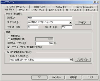 - サイトプロパティウィンドウで[Webサイト]を選択し、このWebサーバのSSL Port